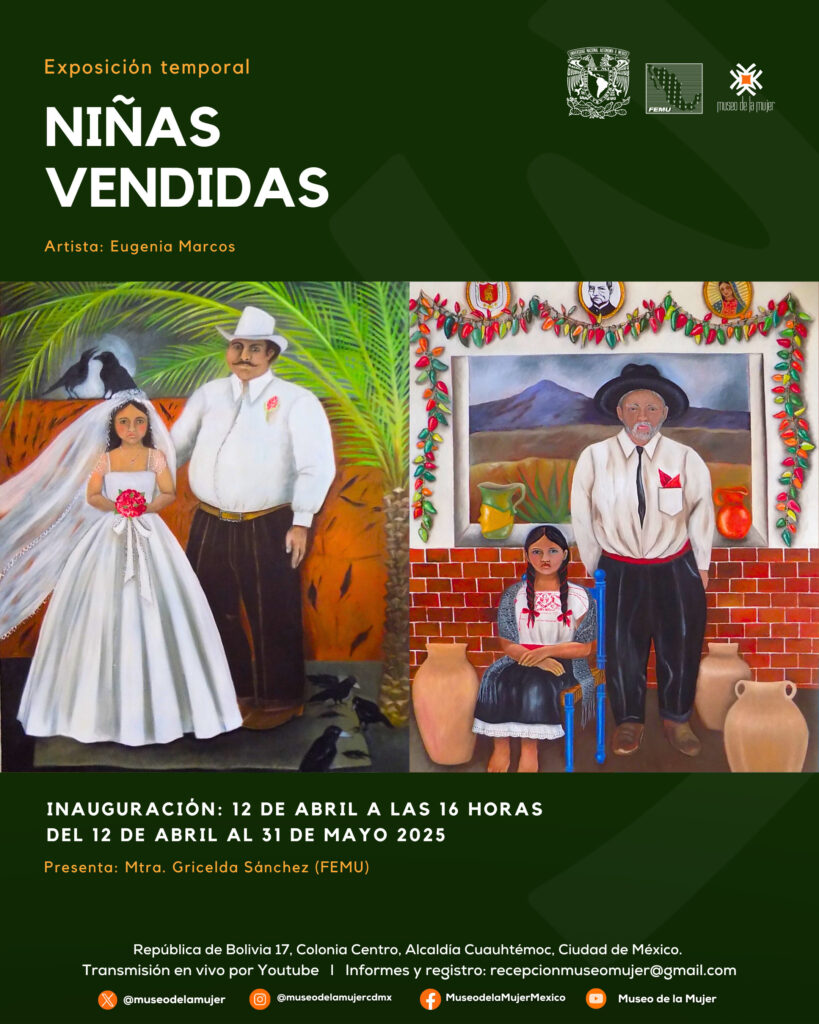 Esta exposición está dedicada a todas las niñas que han visto truncados sus sueños a partir del momento que, amparados en los usos y costumbres de algunas comunidades indígenas, los padres las venden «antes de que les toque la luna», es decir, antes de su primera menstruación.